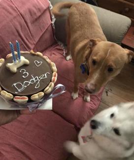 17 Julio de 2019: Aco (ahora Dodger) llegó a su familia justo a tiempo para la navidad 2017. Él está realmente disfrutando de su vida, se ha adaptado muy bien con su hermana mayor. Hace poco fue su cumpleaños y tuvo un delicioso pastel para celebrarlo!. Disfrutamos de recibir estas actualizaciones incluso de las adopciones de hace años.