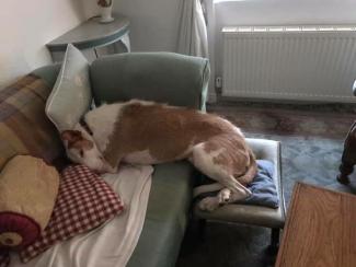 31 Enero 2019: Celin (ahora Fergus) tiene una habilidad para encontrar los lugares cómodos, incluso si no encaja bien!.