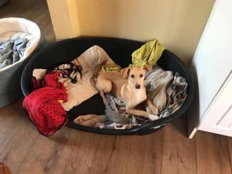 07 de Junio de 2019, Recibimos noticias de Sammy: ella fue adoptada por la familia de Hudson. Nos cuentan que se ha instalado perfectamente y que Hudson la aceptó directamente. Ella persigue a su hermano mayor por el jardín (tratando de ser jefe) y él gentilmente juega con ella!. Su familia la adoran y les damos las gracias por adoptar de nuevo.