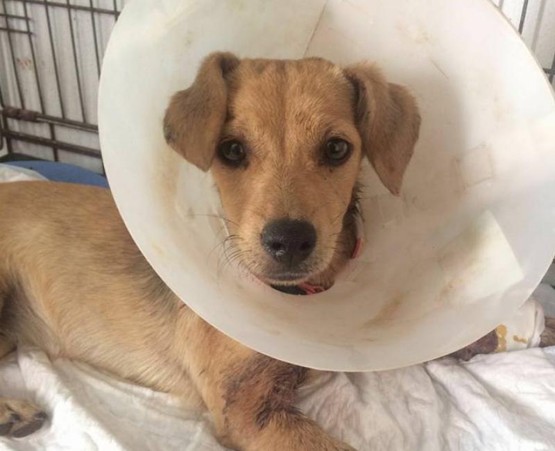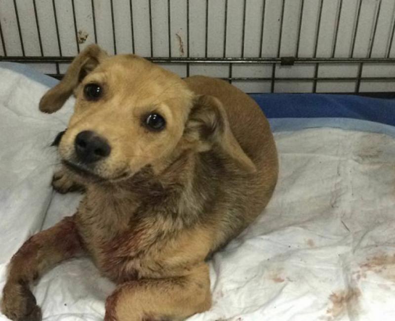 La pequeña esta estable pero en estado de shock apenas tiene 6 meses. Han suturado sus heridas en ambas patas, tenía los ligamentos expuestos al aire y tambien han sido suturados. Ahora a esperar evolución por si requiere operaciones posteriores.