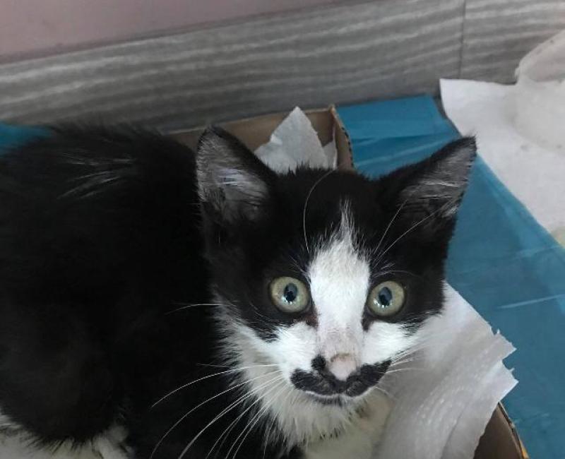 Este pequeño es Tom, lo encontraron junto a la carretera sin moverse. Al tomarlo en brazos vieron que su barriga estaba destrozada, muchas heridas con gusaneras, por lo tanto una infección enorme. Rápidamente acudió al veterinario quien le hizo una limpieza exhaustiva, mandándole a casa con curas diarias, crema antibiótica y antibiótico por boca.