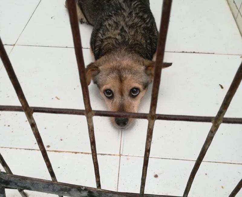 Adela fue encontrada por una familia en la calle pero sólo pudieron tenerla una noche por lo que contaron en redes sociales y la dejaron en perrera. Cuando fuimos por casualidad, allí estaba la pobre: tirada en el suelo, mojada por la lluvia y totalmente apática...