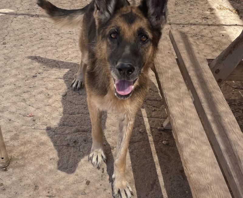 Recibíamos una llamada de los vecinos de al lado del refugio diciendo que llevaba toda la mañana un perro grande allí, que entró al abrir a las 8, y que por más que intentaban echarlo, se daba la vuelta y volvía a meterse en las instalaciones. Imaginamos que como le habían estado ofreciendo comida, no quería volver a pasar penurias.