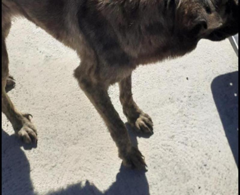 Nos daban el aviso de esta grandullona abandonada en un pueblo: extremadamente delgada y los ojos fatal, como se puede apreciar en las fotos. Gracias a la persona que dio el aviso, rescató y trasladó hasta el veterinario donde trabajamos.