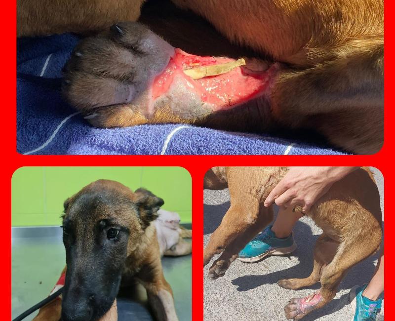 Luego contactaron con nosotros y fue trasladado a nuestra clínica de confianza, donde tras realizarle todas las pruebas pertinentes fue operado de su pata. Por desgracia, debido al tiempo que había transcurrido desde el accidente no hemos podido salvar la extremidad y hemos tenido que amputarla, ya que la infección era enorme y había una gran cantidad de tejido muerto.