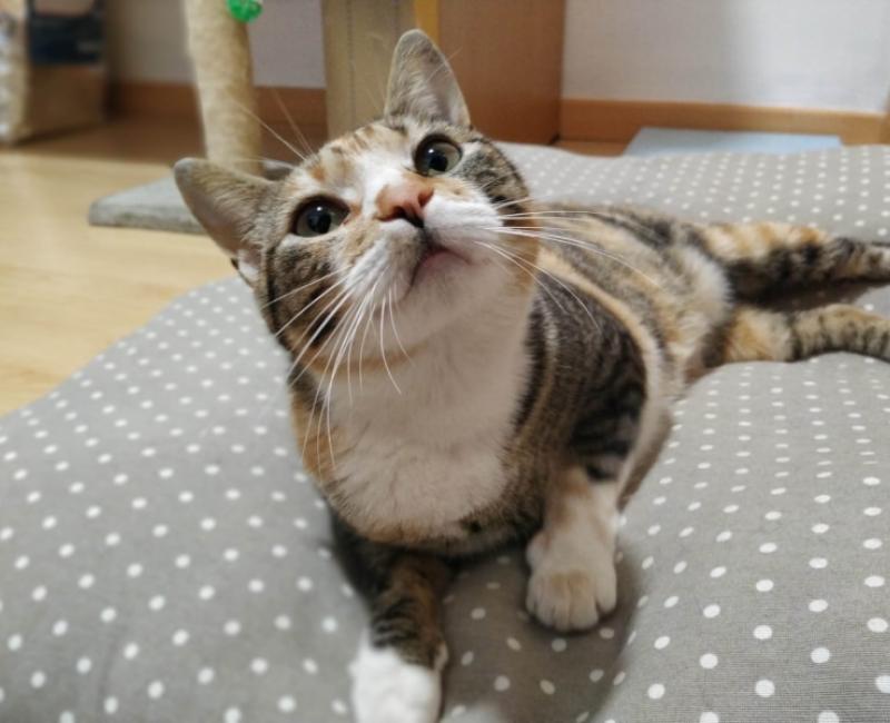 Acompañaba a su cuidadora hasta su casa para después resguardarse debajo de los coches con el riesgo que eso conlleva. Por desgracia su cuidadora tiene muchos y varios enfermos y no podía subirla a casa, así que nos contactó y por suerte teníamos una acogida de gatos libre.