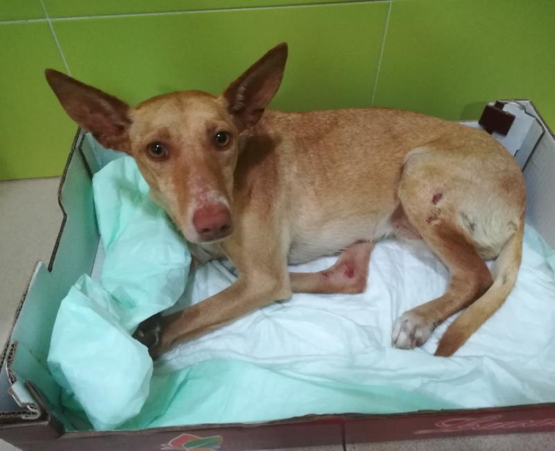 A esta preciosa podenca a la que hemos llamado CADIE, la encontraron tirada en la carretera. La persona que la vió no pudo dejarla ahí y la llevo corriendo al veterinario donde le realizaron radiografías y, lamentablemente su cadera está destrozada. Por el tipo de lesiones que presenta esta claro que es un atropello y que el COCHE le PASO POR ENCIMA sin preocuparse por ella, como si fuese un objeto molesto en el camino.