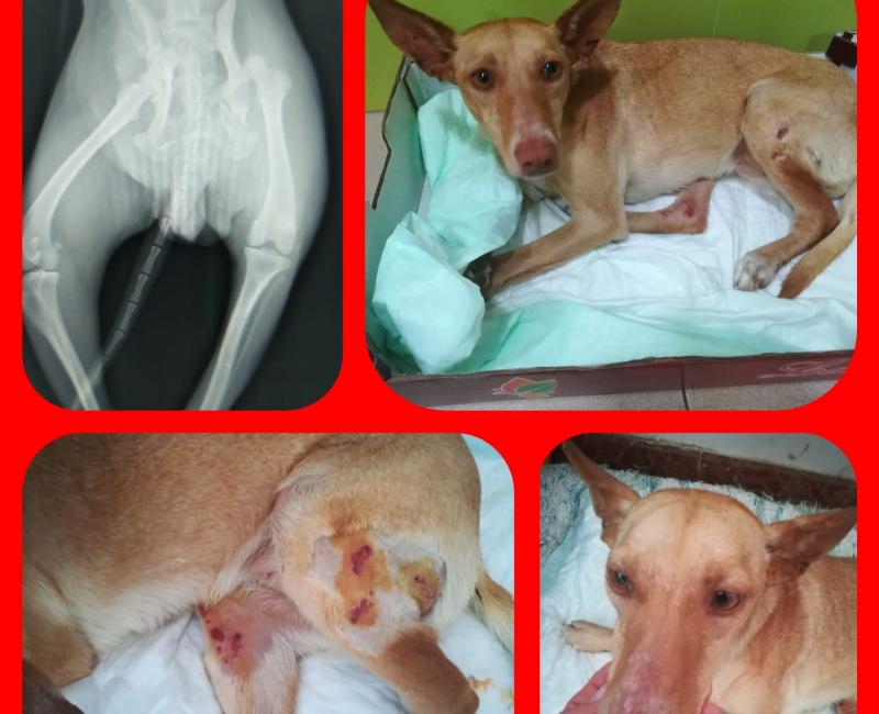 20 de Marzo de 2021: Cadie fue operada ayer de sus 12 fracturas. Estuvo un día ingresada con suero ya que decían que estaba un poco deshidratada. Este es el parte que nos envía el veterinario: La cadera estaba completamente destrozada, en la hemicadera derecha tenia una fractura del ilión con un fragmento suelto, fractura de isquión y pubis. En la izquierda, luxación coxofemoral y fractura de ilión caudal al acetábulo y fractura de isquión y pubis también.