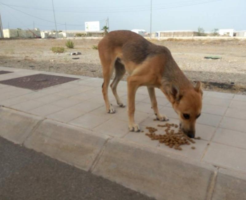 Ibamos conduciendo cuando se nos cruzó un perro, era Isidro, nos paramos a darle de comer y agua y 2 minutos después apareció Chacal.