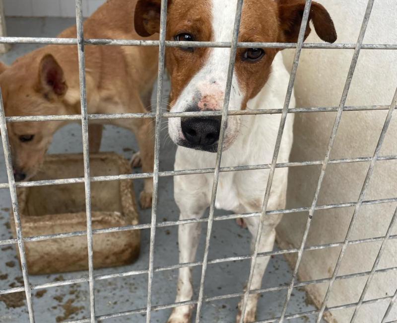 Derek es un perrito cariñoso y sociable. El pobre ha estado en el centro más de 8 meses.
