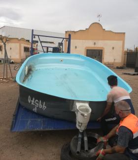 Hace unas semanas recibimos un aviso especial: ¡querían hacernos una muy generosa donación!. En esta ocasión no era pienso para los peludos, sino algo que les vendría muy bien para refrescarse en el caluroso verano almeriense: ¡UNA PISCINA!.