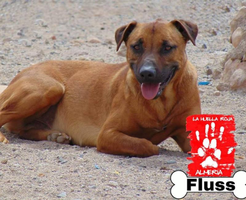 Super sociable con perros pero NO con gatos. La calle le da miedo pero eso obviamente viviendo en un refugio es imposible de eliminar, si quieres darle una oportunidad a Fluss tanto acogiendolo como adoptandolo escribe a lahuellaroja.almeria@gmail.com