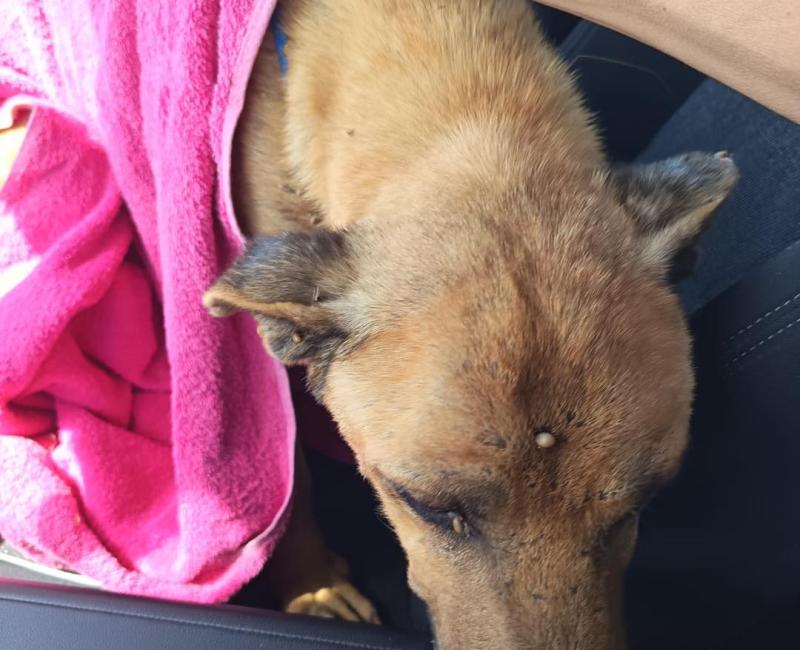 Al detener una chica su coche observó la grandísima cantidad de garrapatas que tenía, no dudó en echarlo al coche mientras nos llamaba.