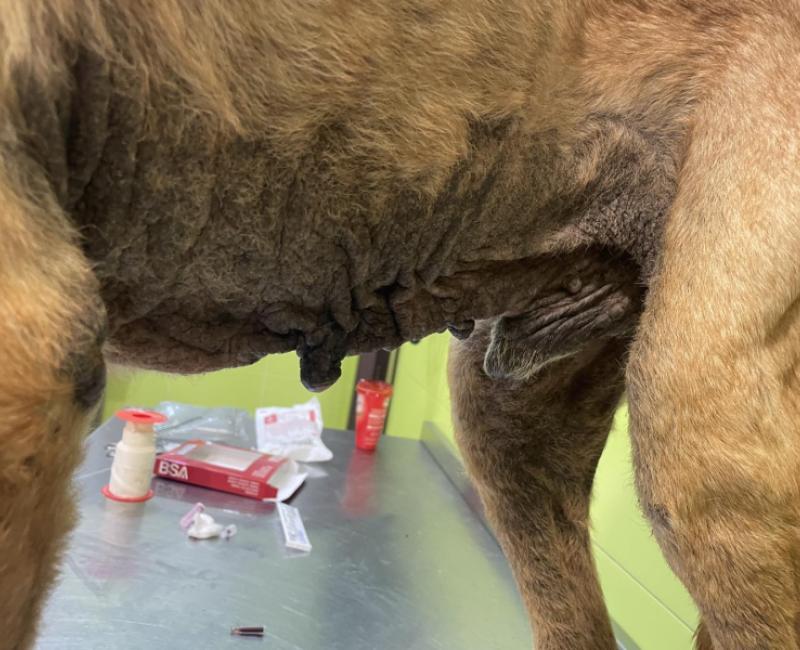 Han tenido que hacerle una transfusión de sangre, y añadir también que ha dado positivo a leishmania.