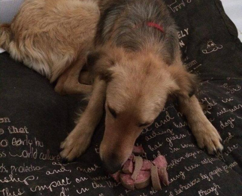 Lo llevo al veterinario de urgencias ya que ni podía andar. Cuando se fue a su casa de acogida solo quería comer y dormir.