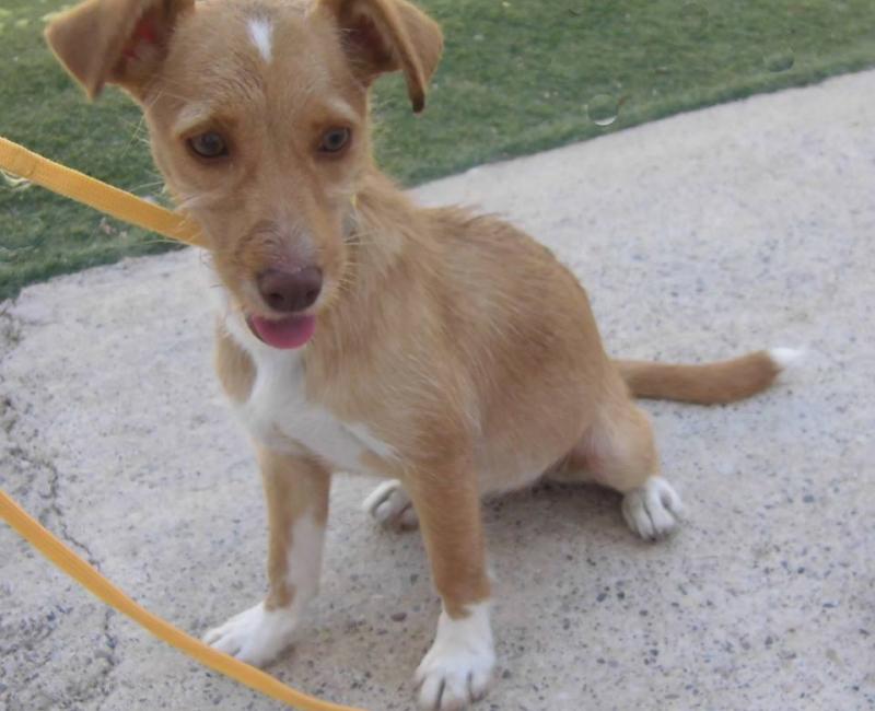 Actualmente se encuentra en acogida, tiene unos 4 meses, será de tamaño pequeño-mediano (entre 10 y 15 kilos) y es un amor que solo busca mimos y caricias.