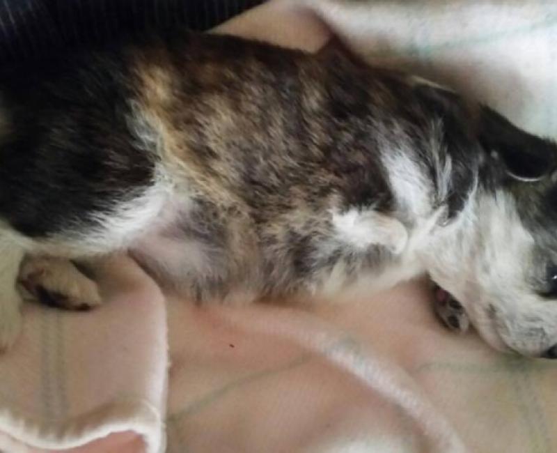 Vimos una foto de ella en internet donde decian que la iban a sacrificar por haber nacido con esta deformidad, sin pensarlo llamamos al telefono de contacto para hacernos cargo y tras conversar con la dueña nos desmintió que fuese a sacrificarla.