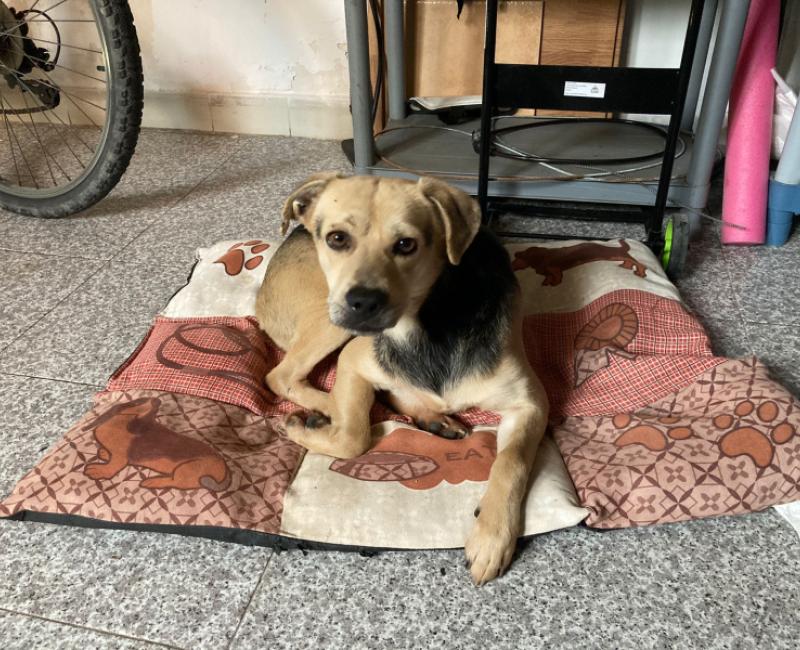 Este es Mantecado, es de tamaño pequeño, solo pesa 10 kilos y necesita un hogar.