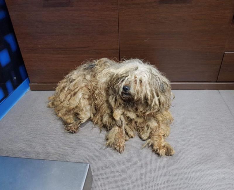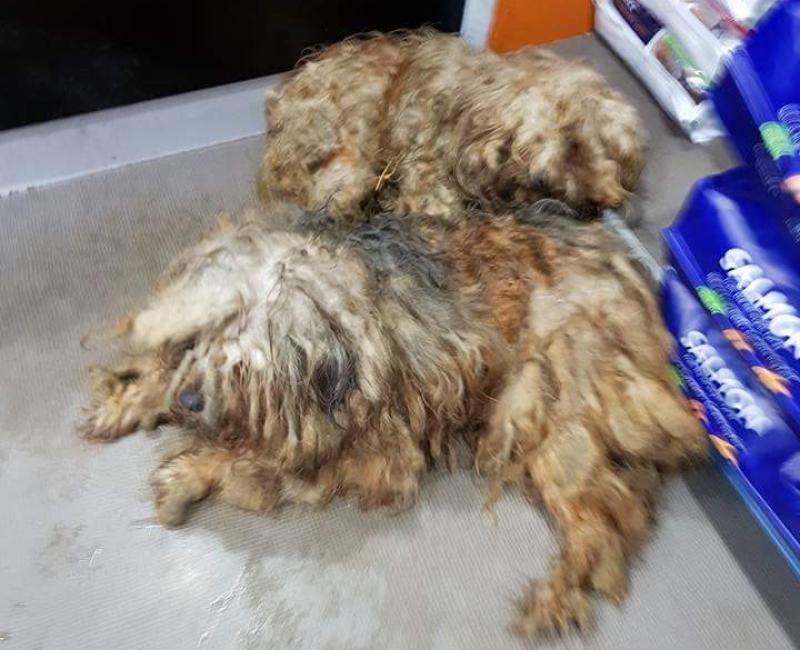 El pobre ya se había rendido por una herida feísima en su cola, muy infectada lo cual le ocasionaba unas fiebres altas que lo tenían sin fuerzas. Este chico los atendió, los llevo al veterinario para sus primeros cuidados de esas heridas y los llevo a lapeluquería donde los dejaron así de preciosos.