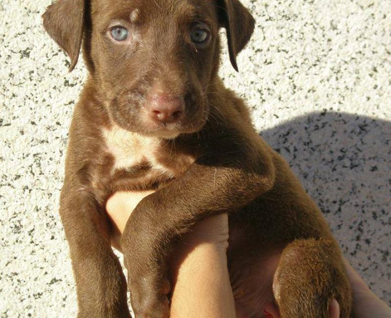 Su mami Kinder se encontraba abandonada, maltratada y a punto de dar a luz en un pueblo de Almería, decidimos salvarla y tras pocos días dio a luz a 10 preciosos cachorros.