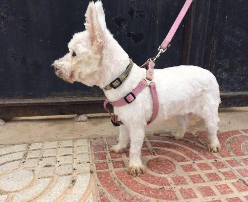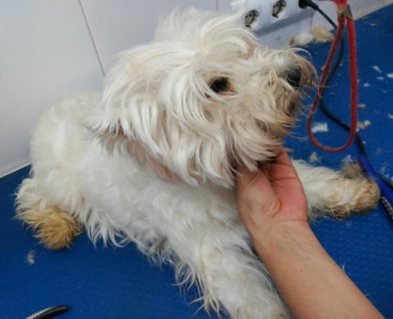 Evidentemente no hemos podido mirar hacia otro lado y gracias a una acogida hemos podido hacernos cargo de ella. Tras bañarla y darle un buen corte pelo para quitarle todos los nudos nos hemos sorprendido que estaba delgada...Le hemos realizado analisis y los resultados han sido que Niebla esta estupenda a pesar de ser todo una abuelita.