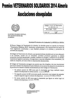 Premios VETERINARIOS SOLIDARIOS 2014 Almería - Asociaciones obsequiadas