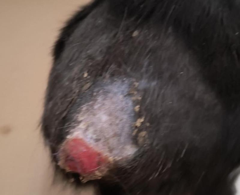 Además la pobre fue atacada por un perro. Por suerte solo le destrozó la cola, se le ha tenido que extirpar en su totalidad. Aun así, la pobre sigue queriendo hacerse amiga de perros y gatos.