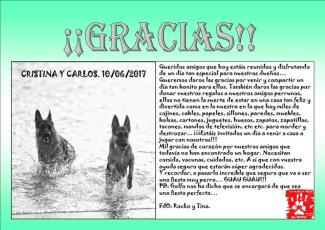 Desde La Huella Roja queremos dar las gracias a Cristina y Carlos por acordarse de nuestros peludos en un día tan importante para ellos. Os deseamos toda la felicidad del mundo en esta nueva etapa de vuestra vida!.