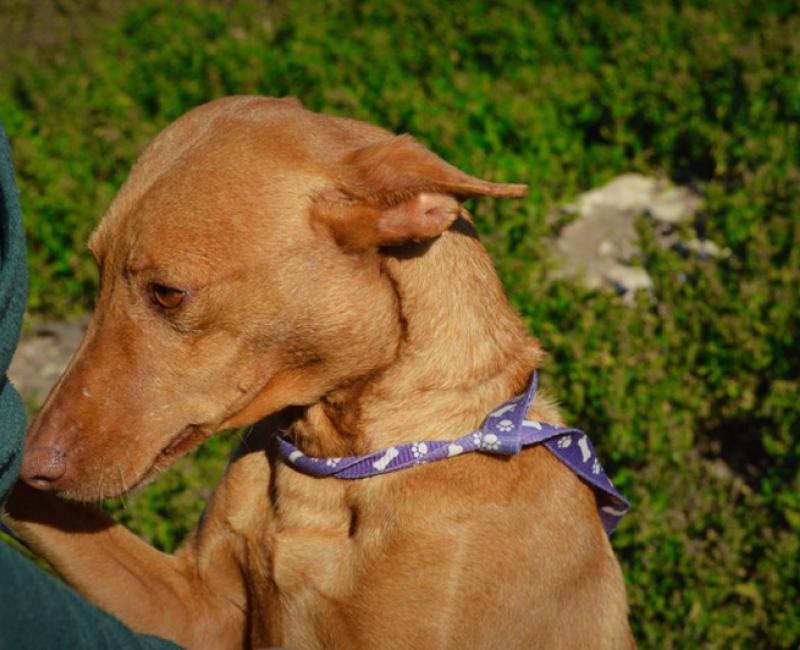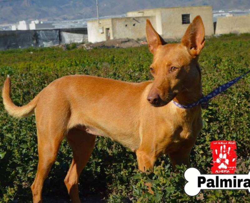 Palmira fue abandonada en el centro zoosanitario de Almería. Por su nombre anterior, deducimos que de manos de un cazador. Tenia un bulto en la glándula salival que ya ha sido operado.