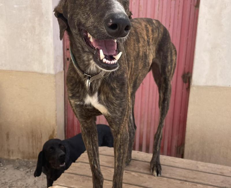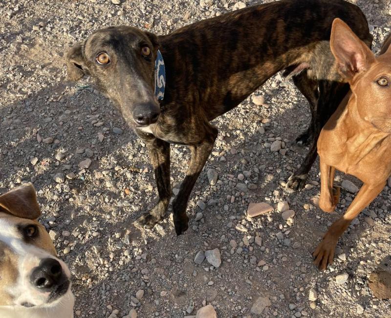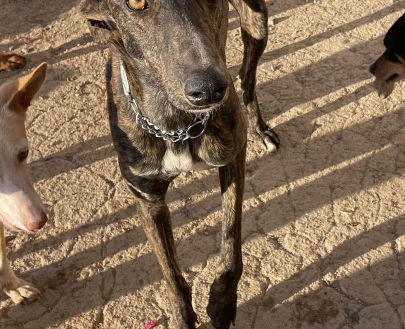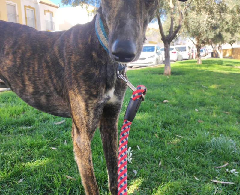 Este precioso galgo fue encontrado abandonado y carente de chip, una familia preciosa pese a no tener espacio, le recogieron y llevaron a casa hasta conseguir la ayuda.