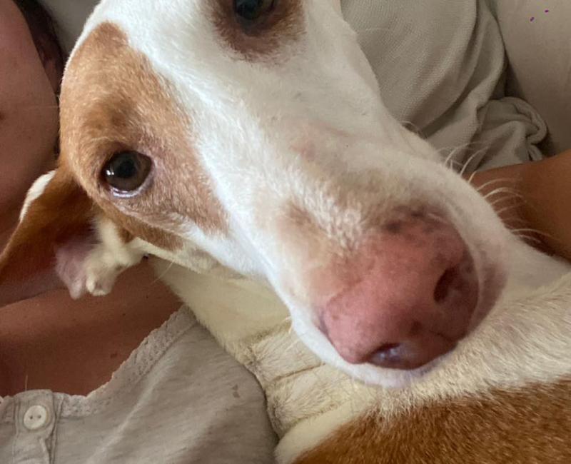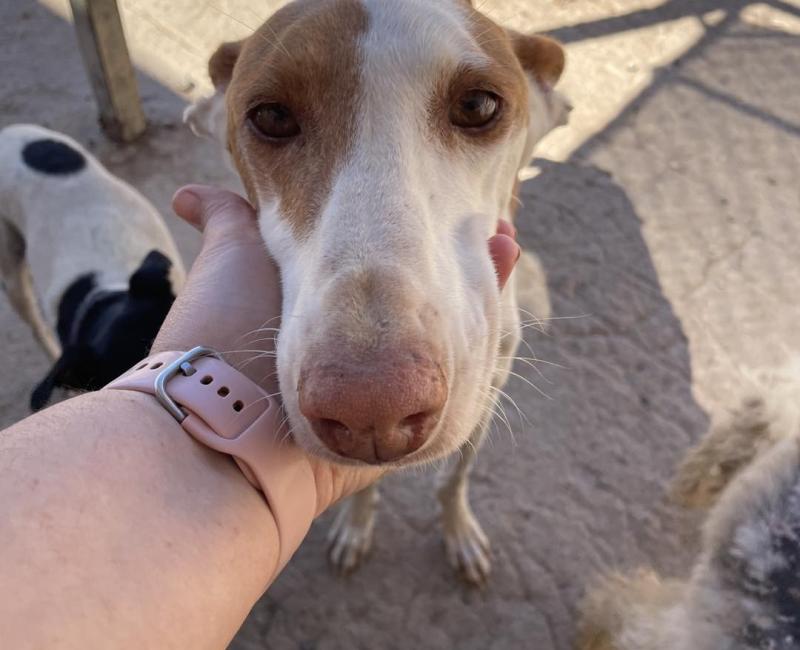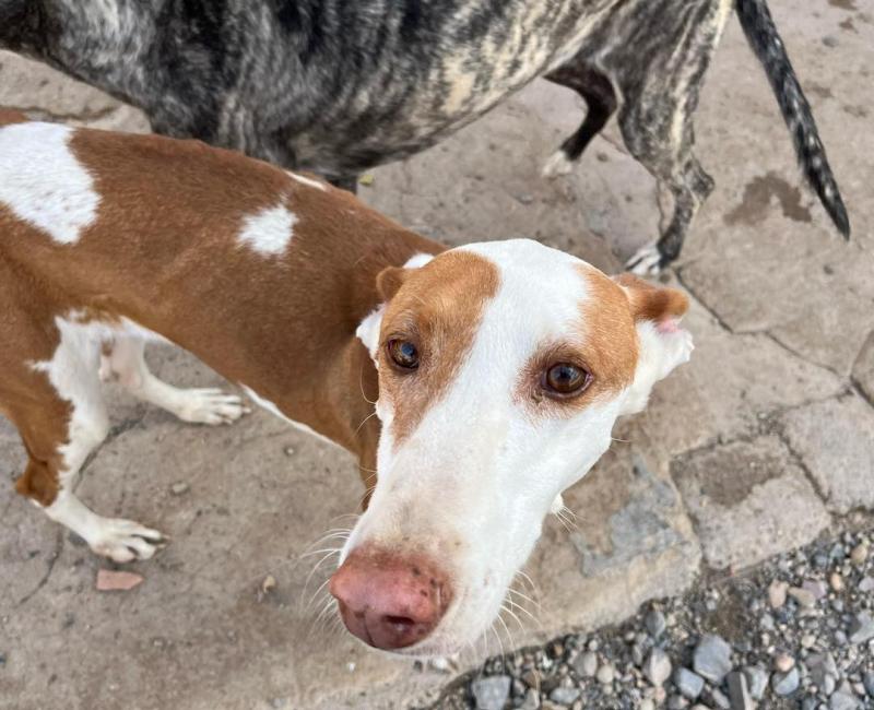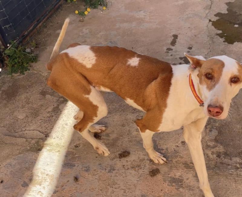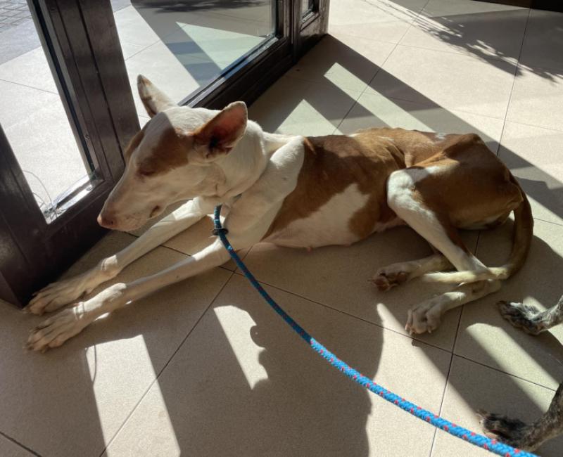 Recibíamos el aviso de un vecino: desde muy temprano había una podenca en el descampado cercano, tratando de meterse en todos los invernaderos. Imaginamos que buscando comida. Pero no todos los vecinos son amigables y amantes de los animales, así que realmente temíamos por su seguridad.