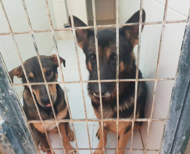Una familia de fuera de Almería nos pidió ayuda para sacar y adoptar a un perro de perrera, un pastor alemán precioso. Cuando fuimos a recogerlo, Prudencio estaba en su misma jaula.