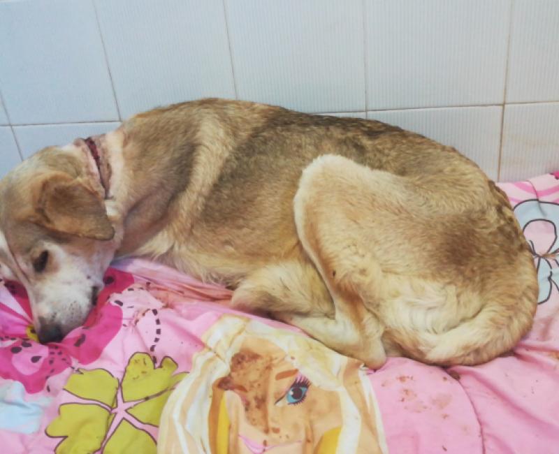 Su compañero Tuk Tuk, por suerte para él, carecía de collar así que solo presenta deshidratación, desnutrición y muchísimos parásitos. Ambos convivian entre basura, heces y parásitos con una persona con problemas mentales la cual ya ha sido atendida por asuntos sociales.