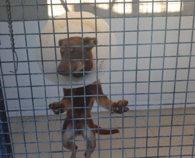 Rodolfo entró en la perrera con una herida horrible, según diagnóstico de la veterinaria de perrera podría ser de un mordisco. Su herida ya prácticamente ha sanado al 100%.