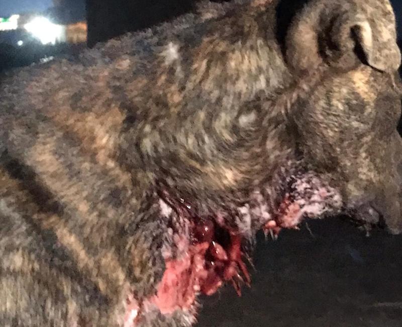 Debido a la profundidad de las heridas ha habido que dejarle drenajes (los tubos que se ven en el vídeo) y algunas zonas dejarlas al aire. Más adelante tendremos que realizarle injertos de piel para poder taparlas.
