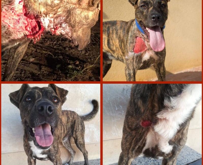 Sarp ya está con nosotros, aún queda un largo camino e intervenciones para que pueda recuperarse pero poco a poco avanza bien. Tras limpiarle la zona fue sedado e intervenido. Hubo que cortar mucho tejido externo ya que su herida no era reciente y la piel estaba "muerta". También se ha tenido que sanear todo internamente, presentaba una gran infección en toda la lesión con lo cual lo principal ha sido quitar todo lo que estaba mal para poder permitir que los tejidos se regeneren.