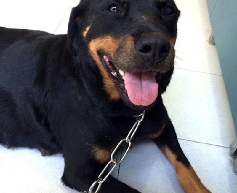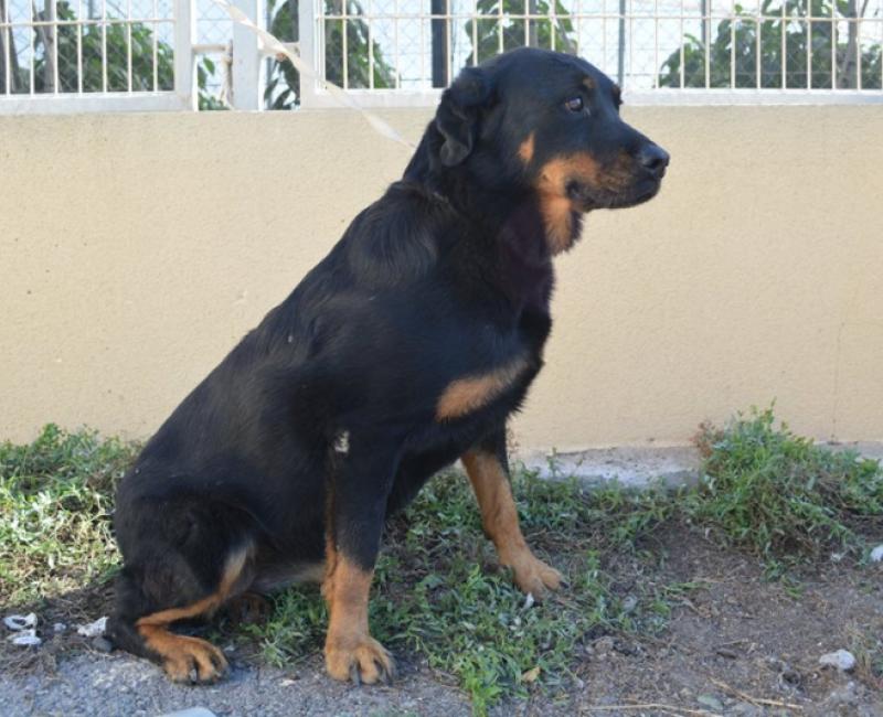 Esta grandullona apareció en la puerta del refugio, sedienta y con mucha hambre. Estaba sucia, llena de heridas, garrapatas y pulgas. Sus mamas están caídas de haberla hecho parir una y otra vez.