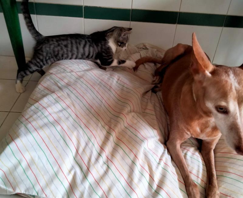 19 Junio de 2021: Tadeo jugando con la cola de su amigo...