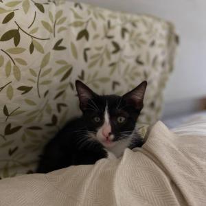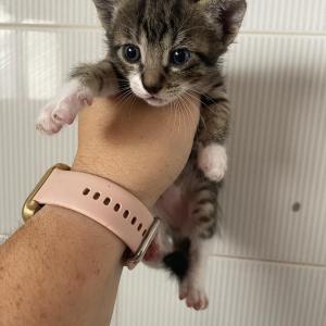 Gato y pequeño felino