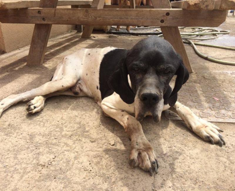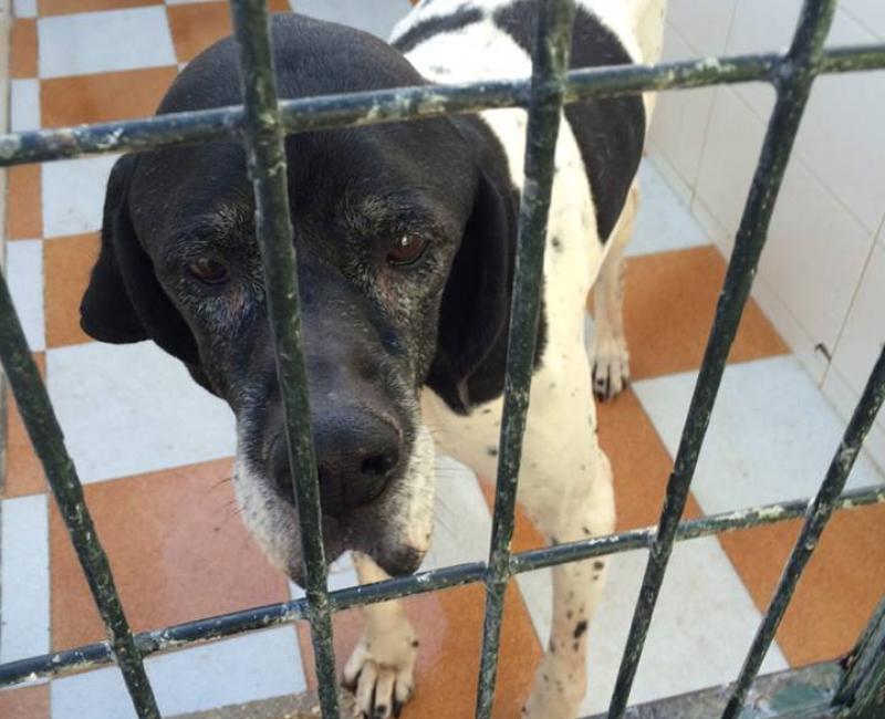 Tom fue dejado en la perrera por su dueño porque ya es mayor y no servia para cazar....