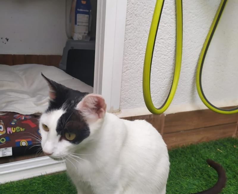 Llevábamos meses viendo a Vakita en la calle, viendo publicaciones de ella en Facebook. Las últimas noticias eran que hay un halcón por la zona, entonces temimos por la vida de los futuros gatitos. Así que la hemos recogido, aprovechando que una de las poquísimas acogidas de gatos se había quedado libre.
