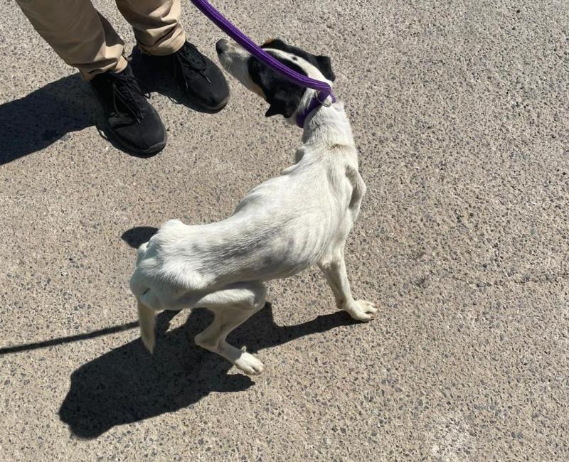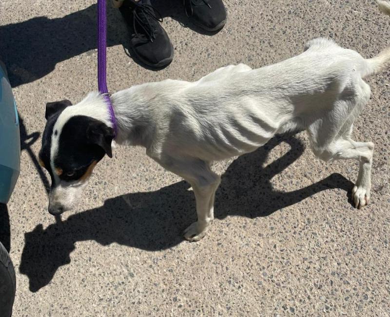 Así ha aparecido el pequeño Wilson en un pueblo, totalmente caquéxico y tan débil que apenas podía mantenerse en pie. Con solo 7,2k. de peso. Gracias a nuestra compañera y amiga Delia, que se trasladó bastantes kilómetros en su ayuda, directamente lo dejó en el veterinario. Allí después de muchas pruebas concluyeron que solo tiene una fuerte anemia, pero teniendo en cuenta el apetito que tiene confiamos que rápidamente estará totalmente repuesto.
