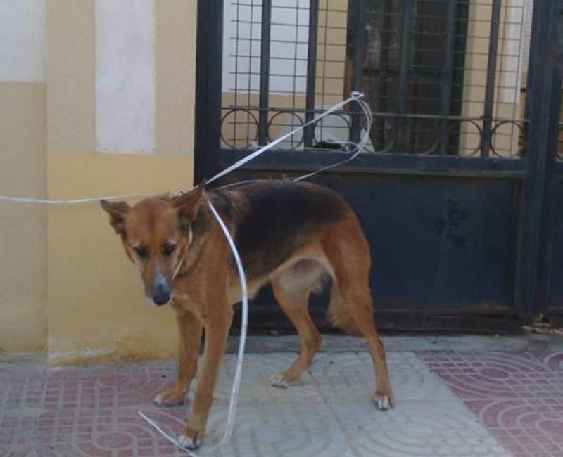 UN NUEVO ABANDONO EN NUESTRA PUERTA: Hay que ser muy cobarde para dejarla así atada y muerta de miedo con un cordel de plástico, como si no tuviese valor alguno...
