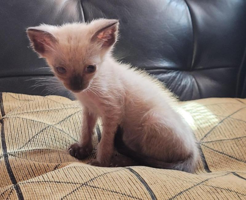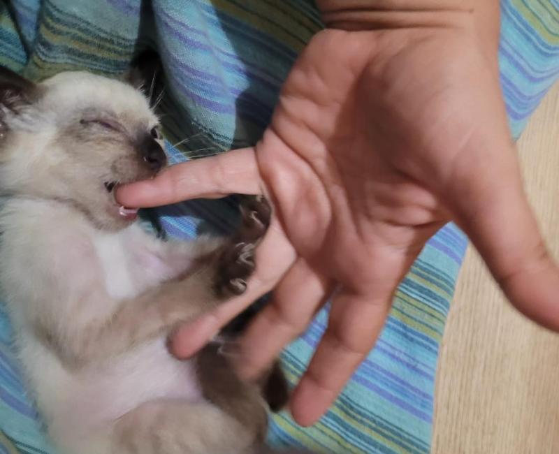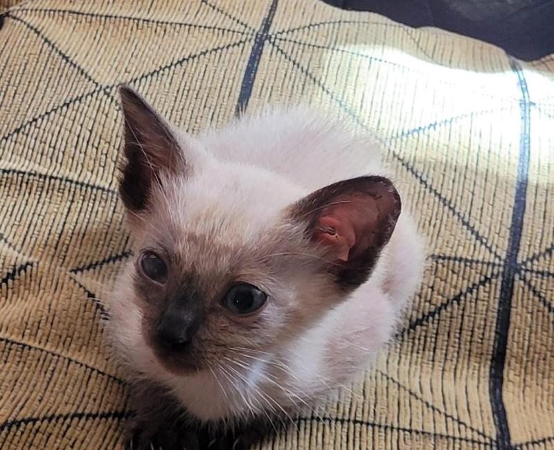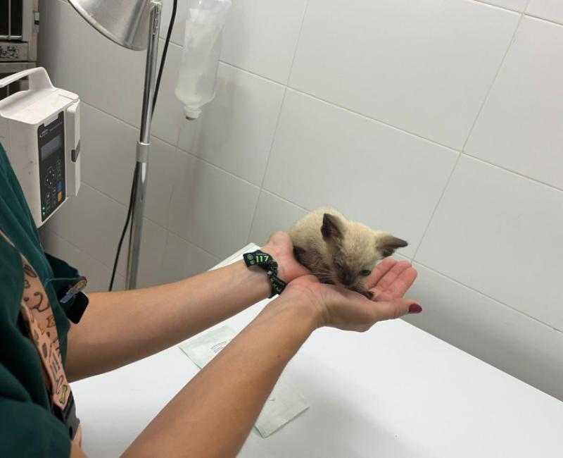 Esta pequeña ya descansa en una casa de acogida. Está siendo tratada con antibiótico y colirio para sus ojitos.