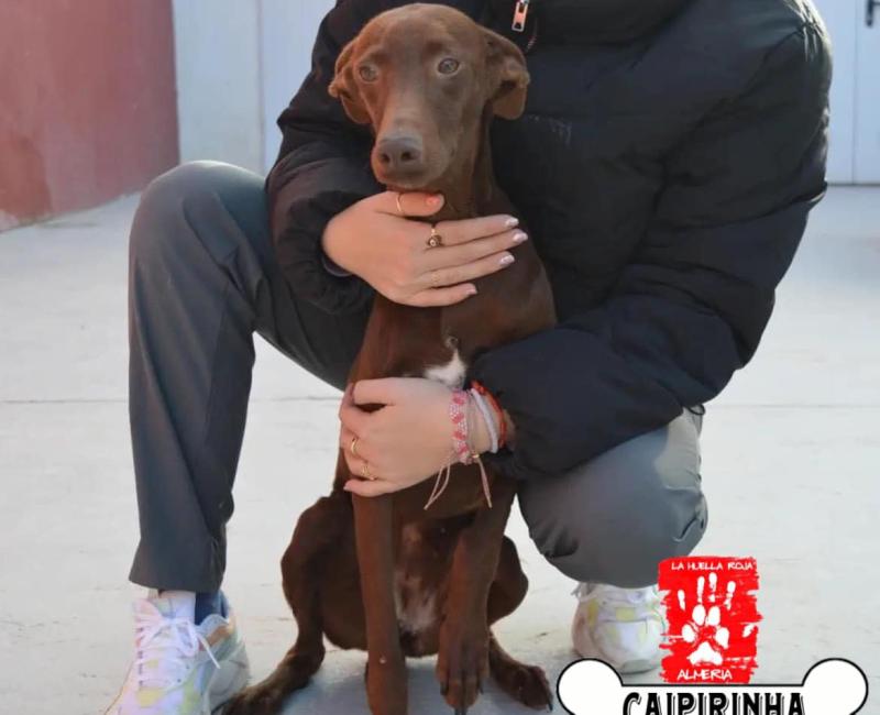 Caipirinha es una perra algo tímida pero muy sociable y cariñosa.