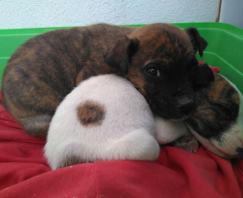 En mitad de la carretera habian abandonado 3 cachorros, uno de ellos ya estaba muerto y de no haberlos visto estos dos pequeños habrían corrido la misma suerte.