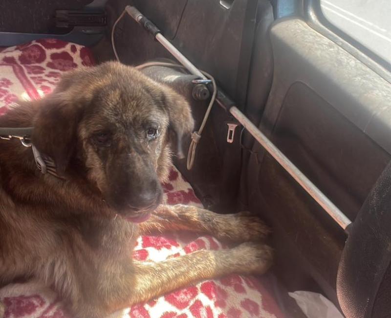 Nos daban el aviso de esta grandullona abandonada en un pueblo: extremadamente delgada y los ojos fatal, como se puede apreciar en las fotos. Gracias a la persona que dio el aviso, rescató y trasladó hasta el veterinario donde trabajamos.