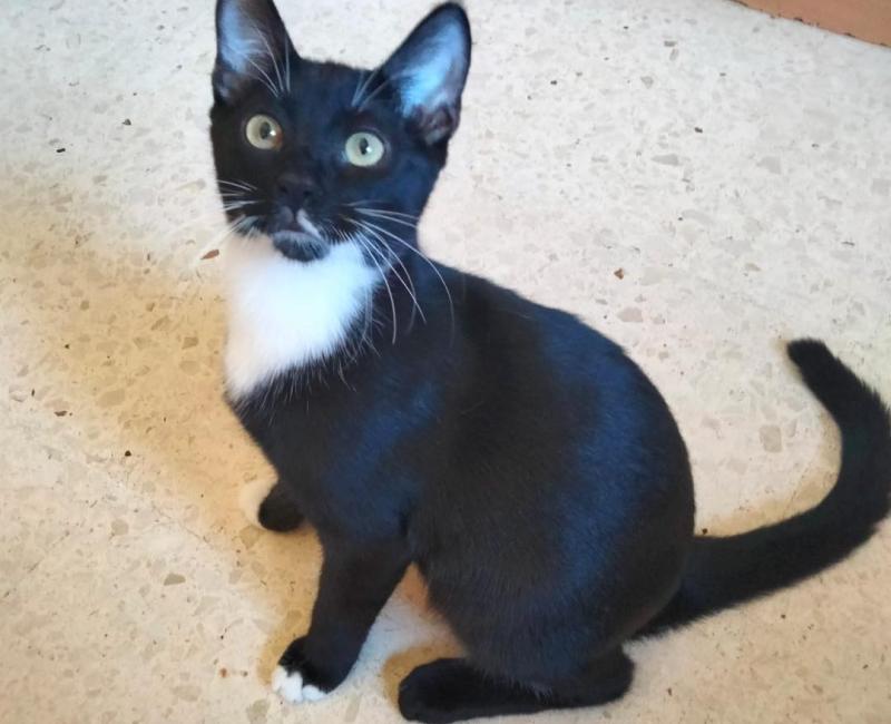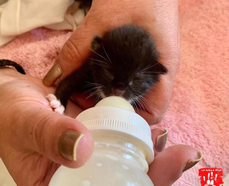 Este es BATCAT, uno de los gatitos abandonados en la puerta de una tienda de alimentación de animales en una caja de cartón. Son 4: 3 machos y 1 hembra. Haremos todo lo posible porque salgan adelante pero son muy pequeños, aún tienen el cordón umbilical.