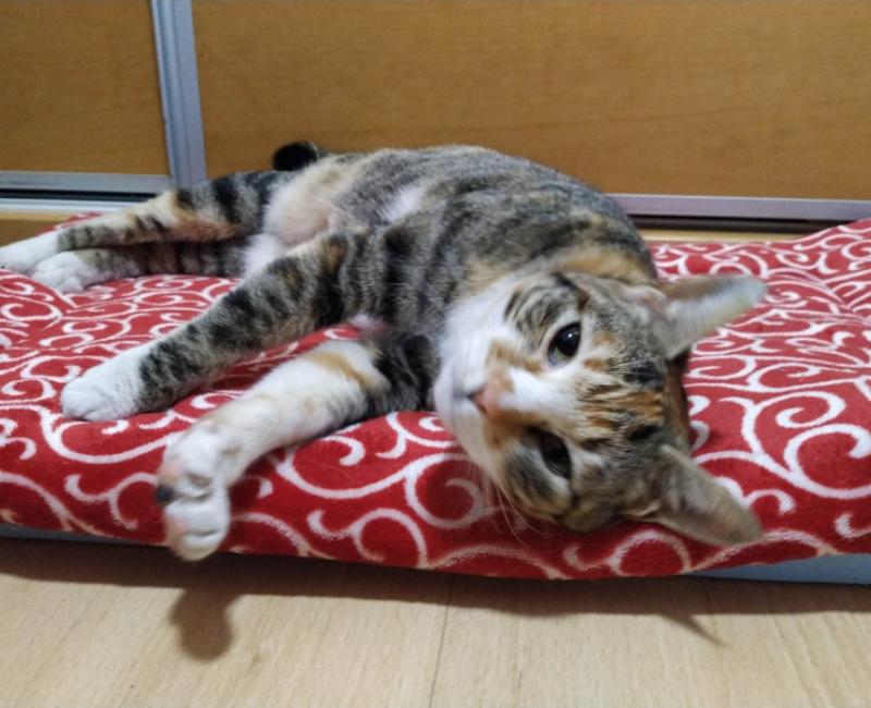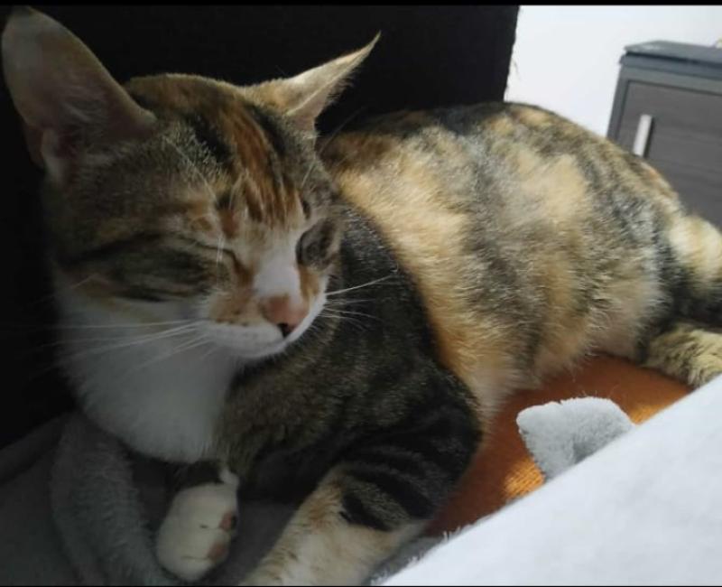 Esta linda gatita apareció en una colonia hace dos meses, se veía totalmente casera y no estaba llevando nada bien estar en la calle. Los gatos le pegaban y tenían que alimentarla aparte para que la pobre pudiese comer.