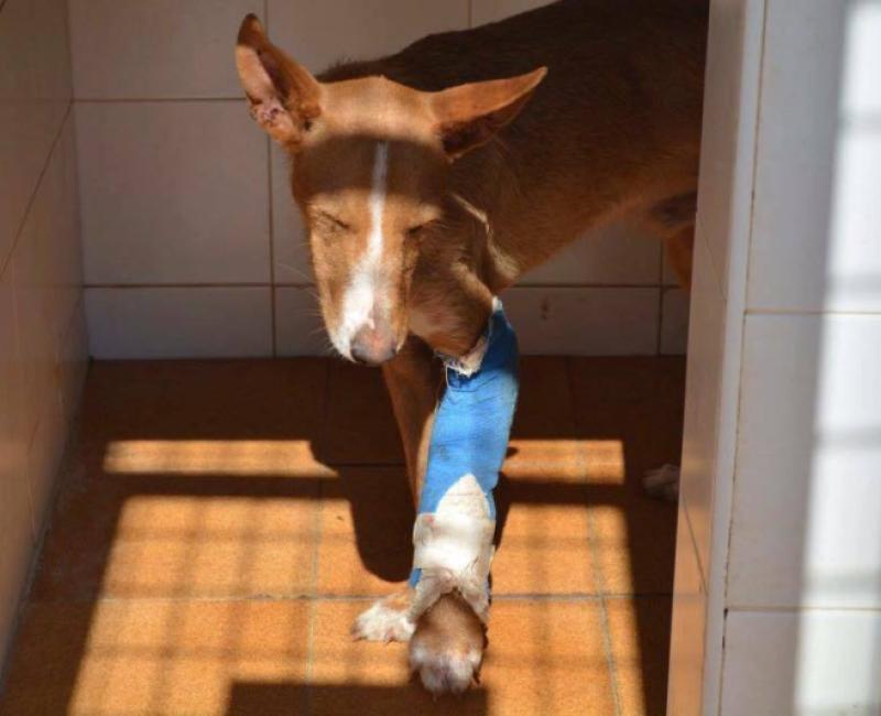 Le sacamos y le llevamos al veterinario donde le han hecho radiografias y será operado para tratar de arreglar su patita.